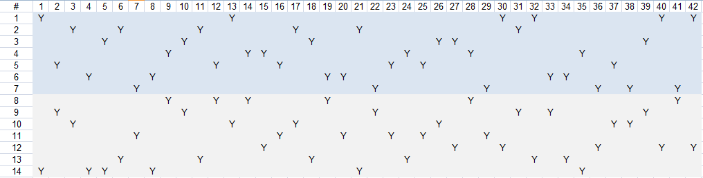 Du siehst, sowohl bei den ersten 7 wie auch bei den zweiten 7 werden zufällig jeweils 6 Gruppen gezeigt (und keine doppelt)