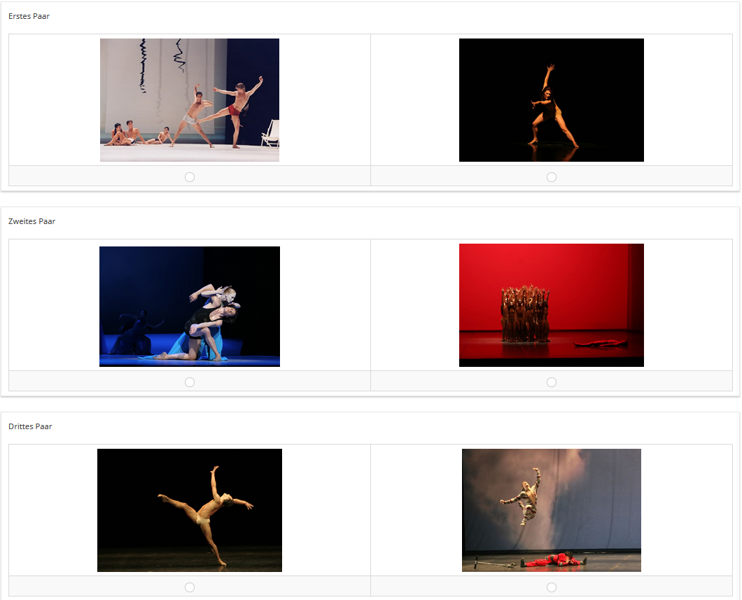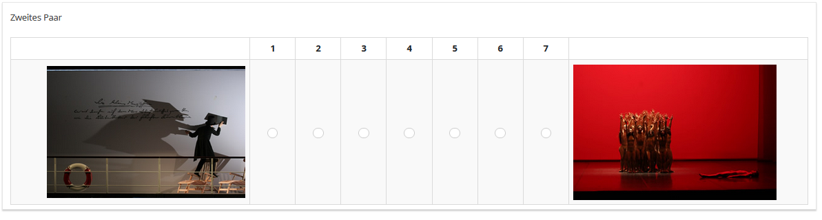 Aber bei Dir heißt die Frage "Bilder"In der ersten Gruppe der Umfrage erstellst Du dann eine Frage vom Typ "mehrfache kurze Text" mit zwei Teilfragen (hier kommen dann die zufälligen Werte des linken und rechten Bildes hinein. (Ich habe sie QPool genannt)