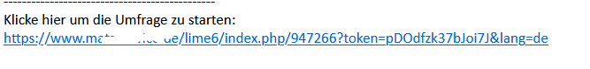 oder"<a href="{SURVEYURL}&ch=mail">{SURVEYURL}&ch=mail</a>"