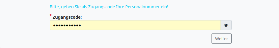 Oder ist eben kein Zugangsschlüssel enthalten und die Teilnehmer müssen Ihr "Passwort" (ihre Personalnummer) auf der Seite eingeben?