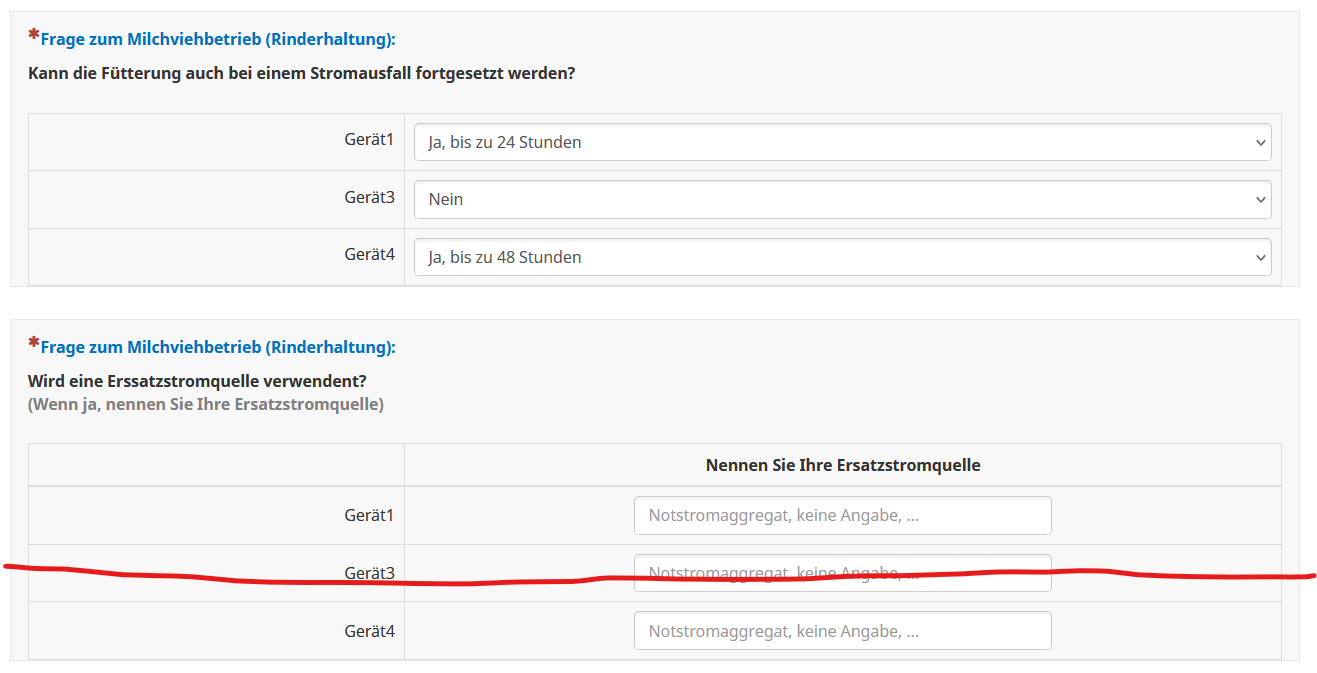 Ich habe es mit Bedingungen probiert => z.B. (( G03Q02_T1.NAOK != "A4") and ( G03Q02_T2.NAOK != "A4")) ...Leider wird dann die ganze Frage entfernt und nicht nur die Zeile/das Gerät.