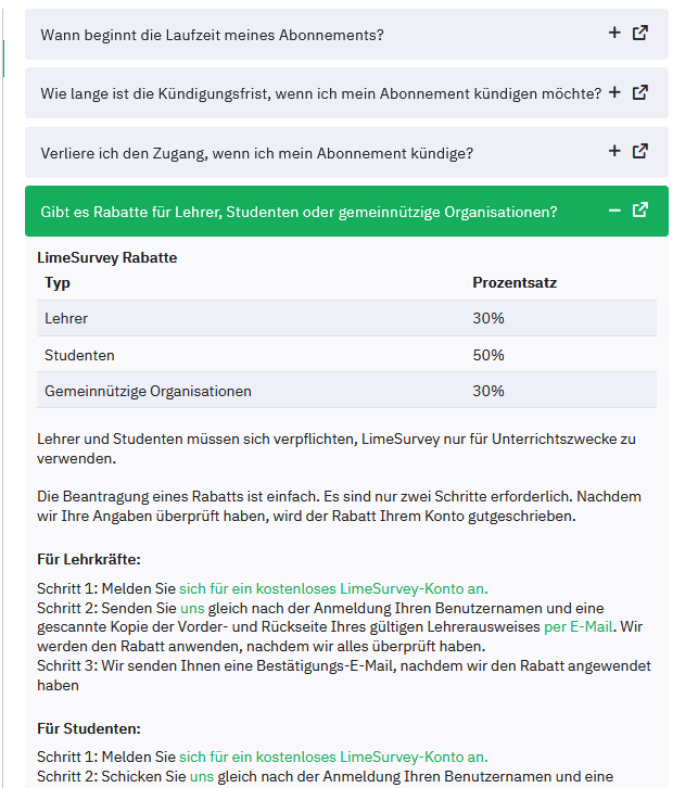 ich benötige Lime Survey nur einmalig für meine Masterthesis, aus diesem Grund lohnt es sich für mich finanziell nicht einen Vertrag abzuschließen. Nun habe ich meine Umfrage veröffentlicht und es wurde mir mitgeteilt, dass ich nur ein Kontinent von 25 Antworten habe. Kann ich es kostenlos auch erhöhen bzw. gibt es da eine Alternative für Studenten?