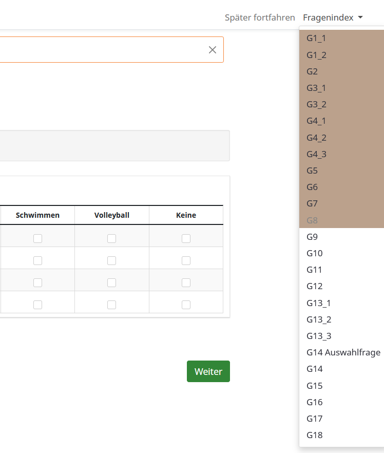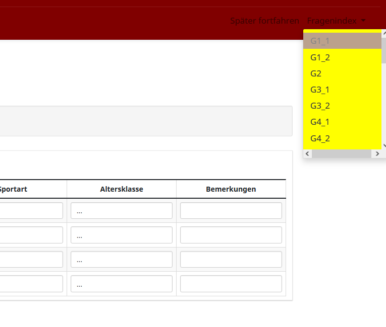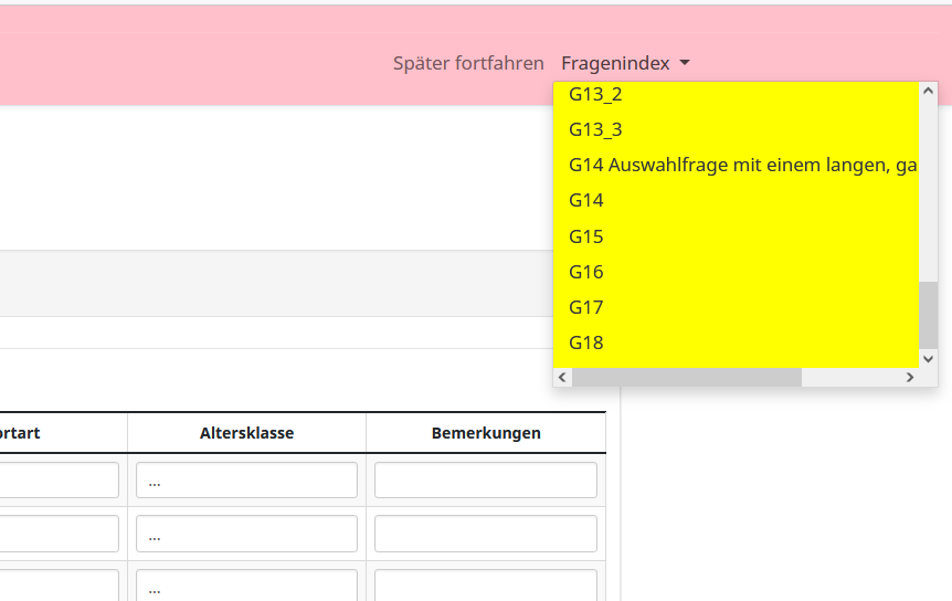 Meinst Du damit den Fragenindex, also diesIn der Kopfzeile, der Navbar, befindet sich eine Listbox,