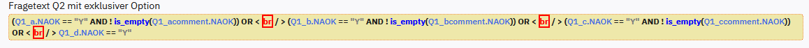 Mit (Q2_a.NAOK=="Y" AND !is_empty(Q2_acomment.NAOK)) OR (Q2_b.NAOK=="Y" AND !is_empty(Q2_bcomment.NAOK)) OR (Q2_c.NAOK=="Y" AND !is_empty(Q2_ccomment.NAOK)) OR Q2_d.NAOK=="Y"