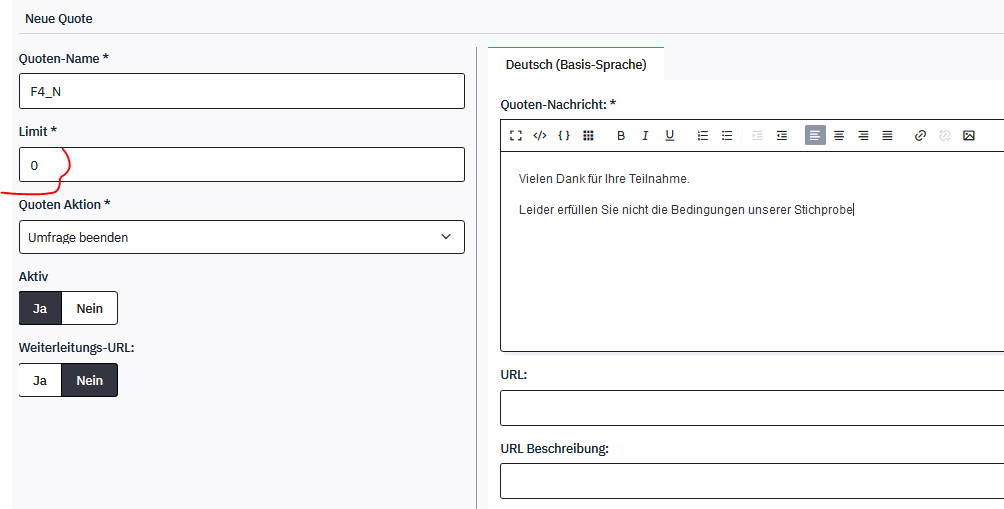 Also legst Du eine Quote an: Umfragemenue "Umfrage Quoten"