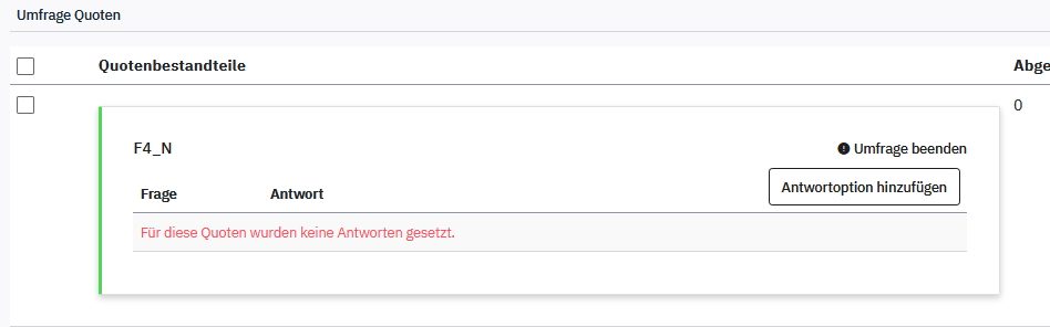 Bei einer Quote werden die Antworten als "incomplete" gekennzeichnet.