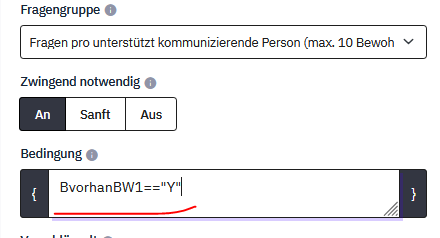 Eine weitere, umständliche Vorgehensweise wäre, alle folgenden Gruppen / Fragen nur anzuzeigen, wenn die Frage 4 mit "Ja beantwortet wurde.