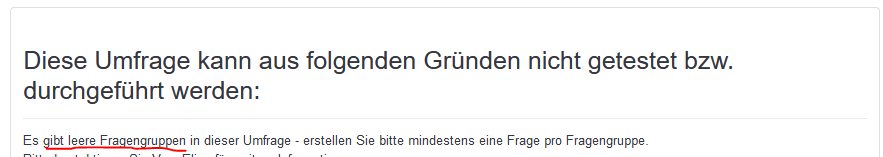 Das Problem ist, dass man Umfrage, die leere Gruppen enthalten, erst gar nicht starten kann.