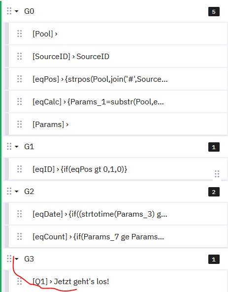 Hier kannst/musst Du dann das Limit der Gruppe mit übergeben, wobei ich aber denke, dies sollte man innerhalb der Umfrage vorhalten.