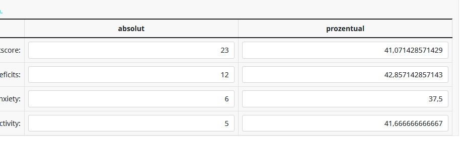 Kann eine "mehrfache numerische Frage" sein, oder (wie ich hier) eine Matrix(Zahlen); ich möchte nämlich noch zusätzlich den Prozentwert berechnen und speichern