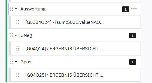 Aber warum überhaupt?Falls Du aber diese beiden Fragen in ein und dieselbe Gruppe legen willst, musst Du natürlich noch etwas mehr hineinstecken.