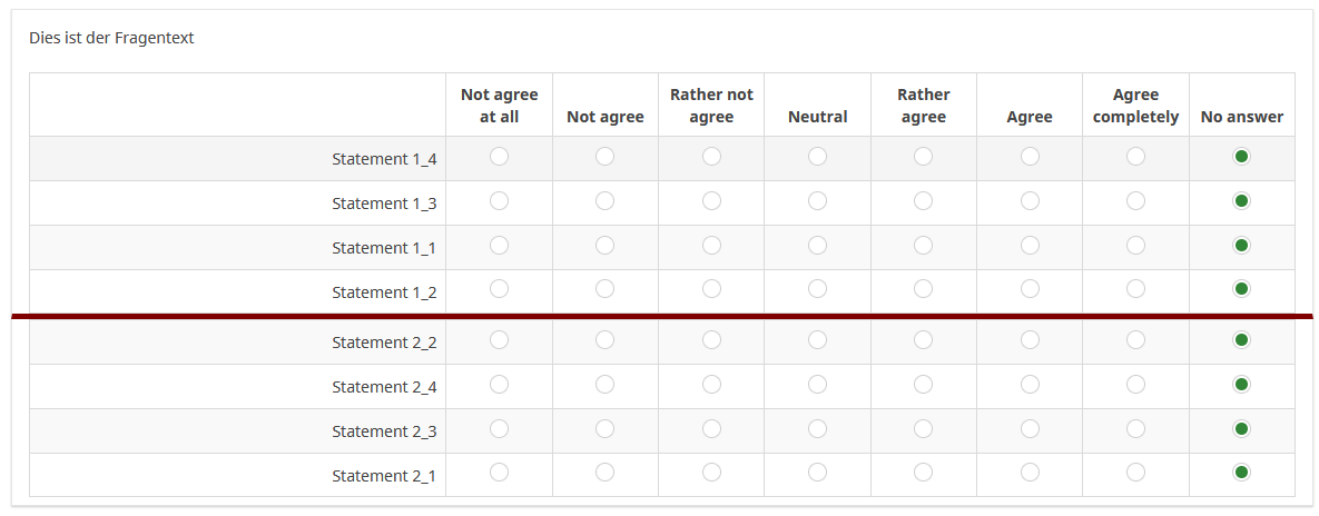 Matrixfrage – Teilfragen visuell absetzen & teilweise randomisieren (ohne JavaSc