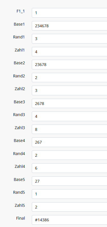 Rand1, Rand2, Rand3,... Die Zufallszahl zwischen 1 und der aktuellen Stringlänge