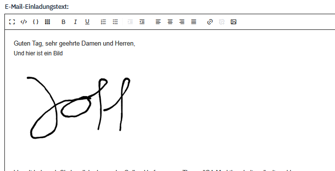wir haben in der Kundenorganisation die Anforderung, Bilder nicht als externe Referenz in den Einladungsemails zu verwenden, sondern direkt im Email zu embedden. In unserer Version voriges Jahr hat funktioniert (da auch mit mehreren Versuchen über uploads /resources etc.kein Erfolg), die Bilder als Base64 encoded direkt in das src-Attribute der Bilder in Vorlage hineinzunehmen d.h.