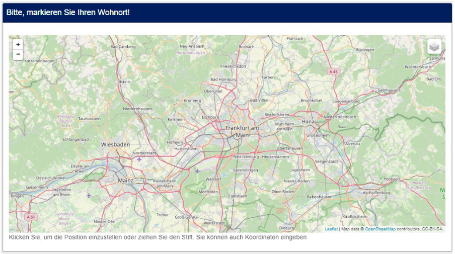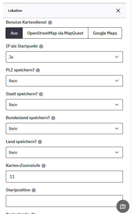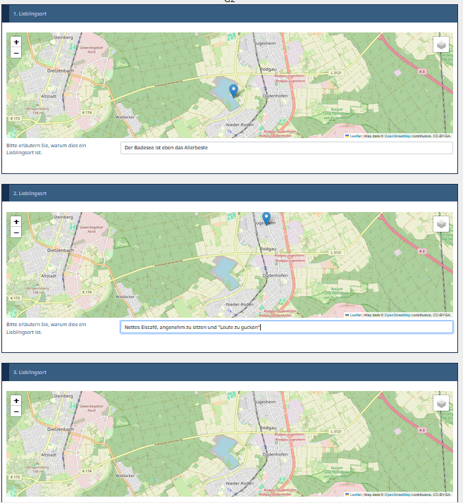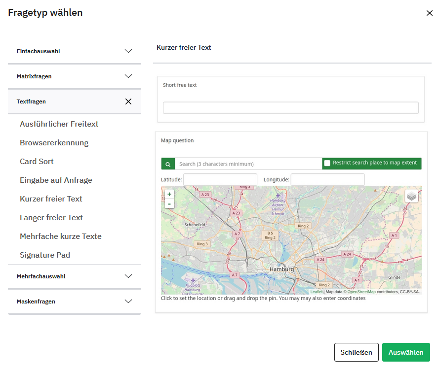 Du benutzt also eine Frage vom Typ "kurzer Text".Use mapping service (location_mapservice)