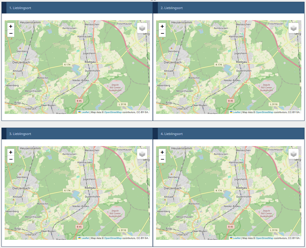 hatte ich, weil z.B. eine niederländische Uni ihre Studenten jedes Jahr mit mehr oder weniger derselben Umfrage quält. Es geht dabei immer um den ÖPNV in dieser Stadt.Willst Du z.B. immer denselben Ausschnitt (einer Stadt) anzeigen