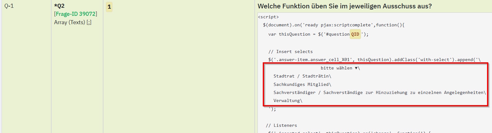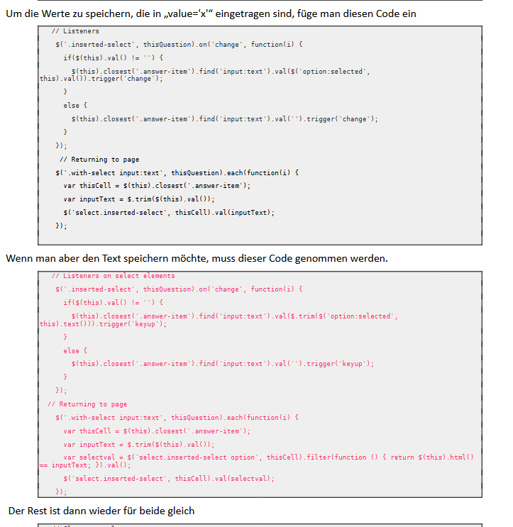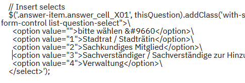 Ich sehe dies in der gesendeten lss (alle Funktionen haben einen zugeordneten Wert)In der von dir korrigierten Umfrage hast du "option value..." allerdings nicht im Skript, sondern nur das: bitte wählen ▼\