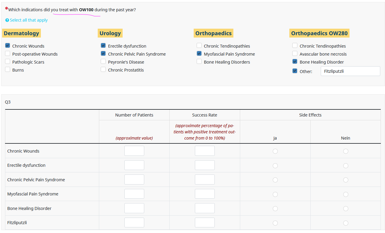 Antwortoptionen der Matrix, Anzahl der Teilfragen in den "mehrfachen Texten" (dort auch die Überschrift)