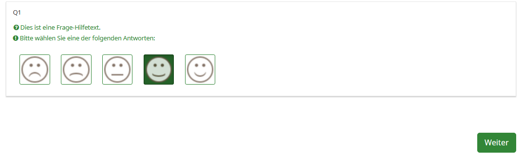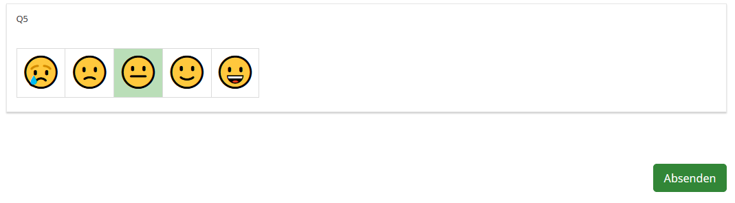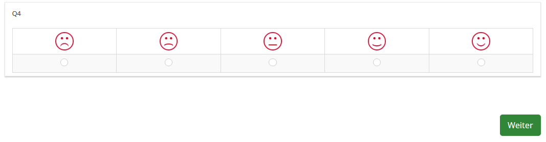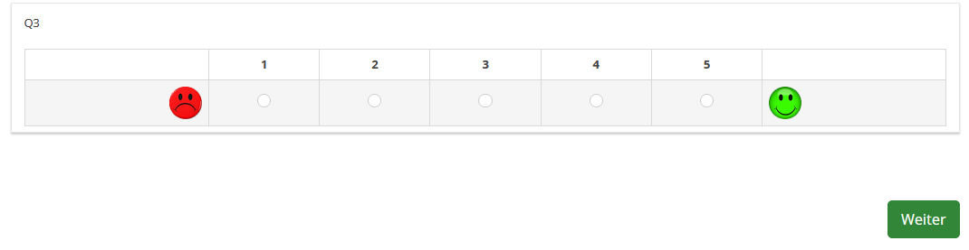 Wie Du gleich sehen wirst, ist dies doch eibnfach nur Text - wie andere Antwortoptionen. Du kannst anordnen, wie Du willst.Und ist es auch möglich, die Reihenfolge der Ausprägungen zu drehen, also von positiv zu negativ?
