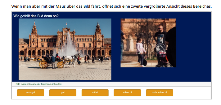 1. In den Stimuli wird das Bild in einer "Text display" Frage angezeigt. Wieso kann es da nicht so groß sein, dass man es nicht vergrößern muss?