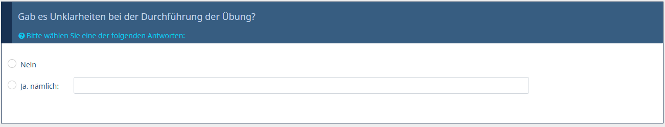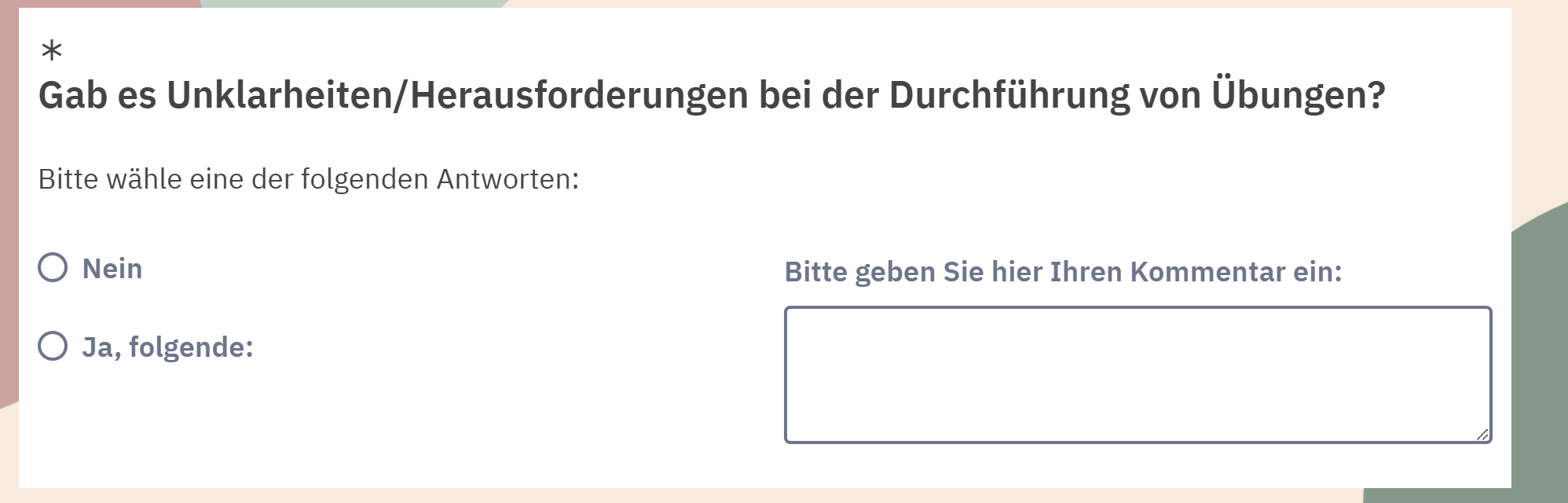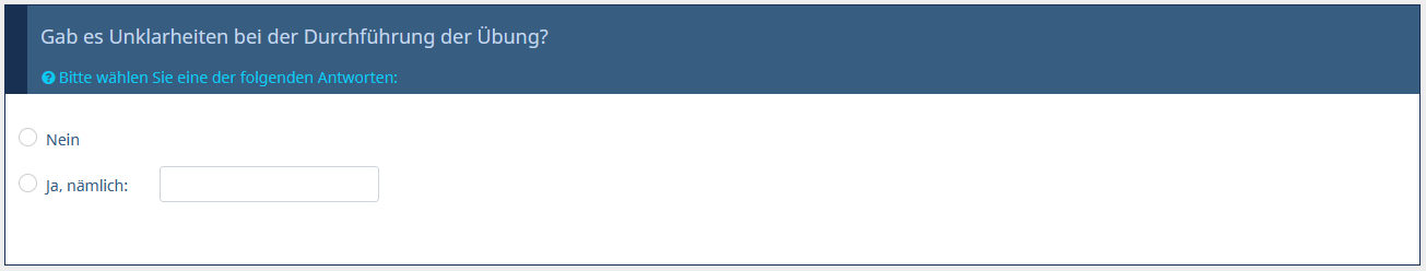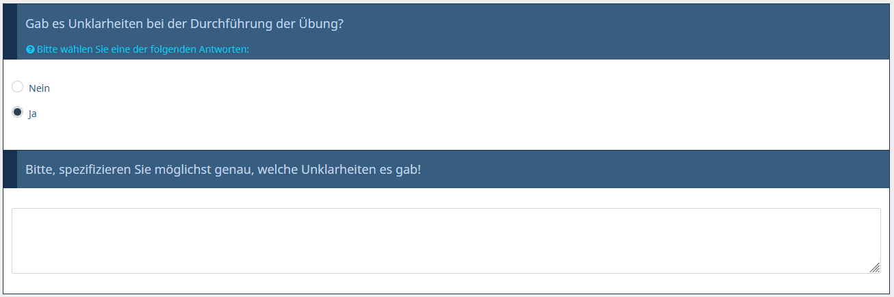 Eine zweite Frage, die nur angezeigt wird, wenn der Teilnehmer "Ja" wählt.