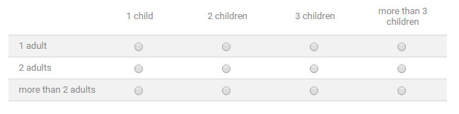 Please help me structure a question so that only one radio button in an array can be selected. So only one (answer option + subquestion) is allowed. For example, the question is "how many people are in the group you will be travelling with ?"