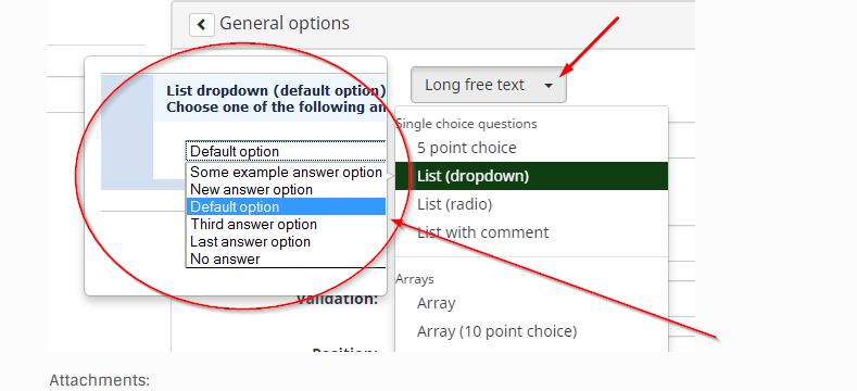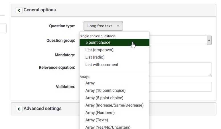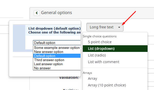 OK, when you click on any of those choises, this should actually select the respective question type.