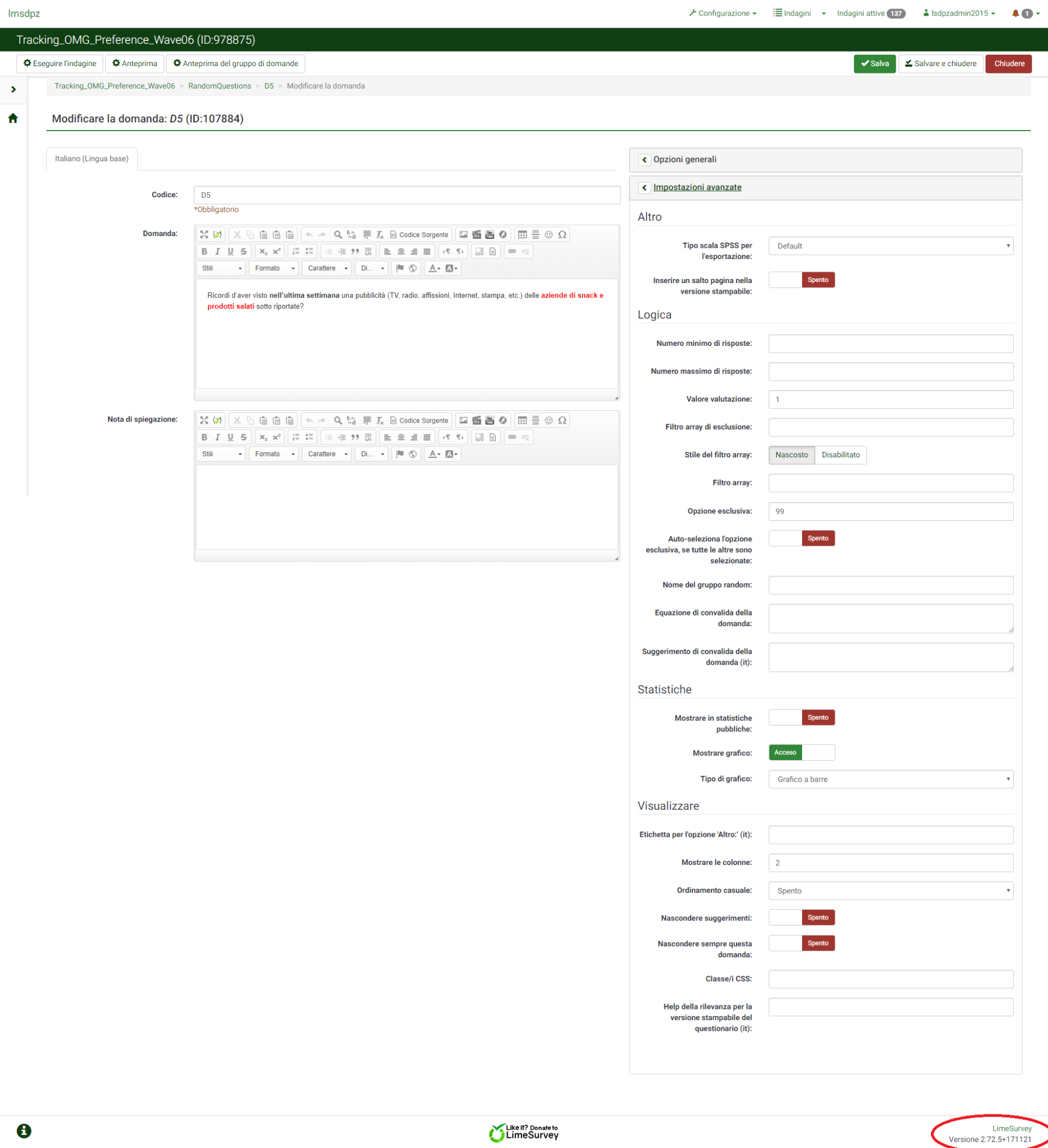 However, it might depend on the question type. What question type are you using? My example comes from a list radio and I am using Version 2.73.0+171219.