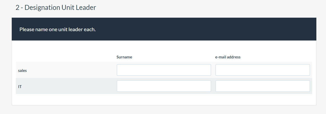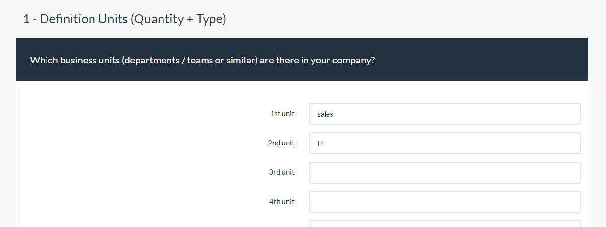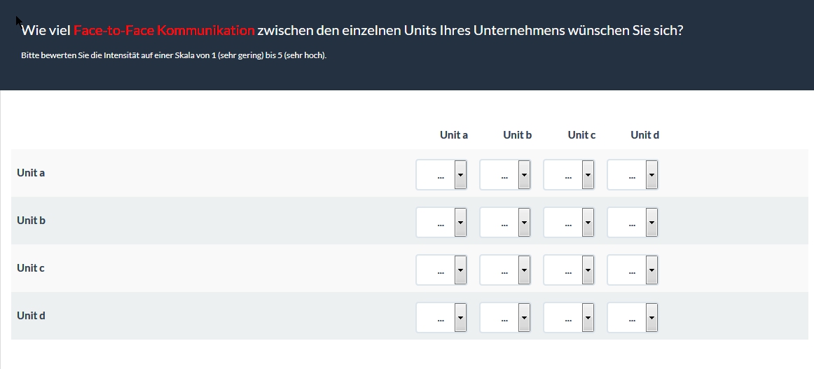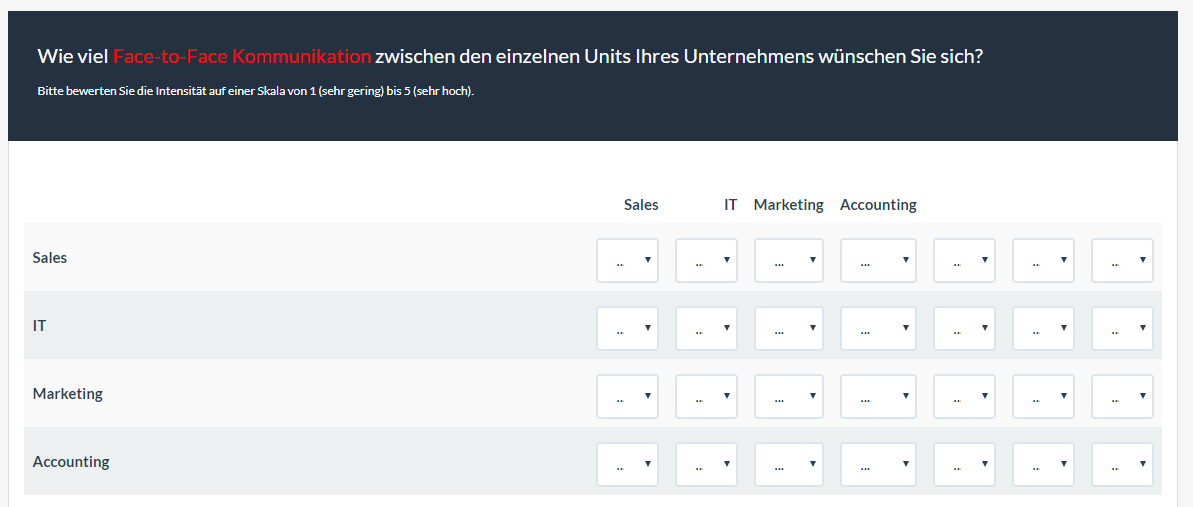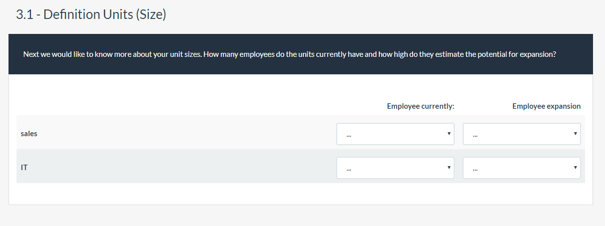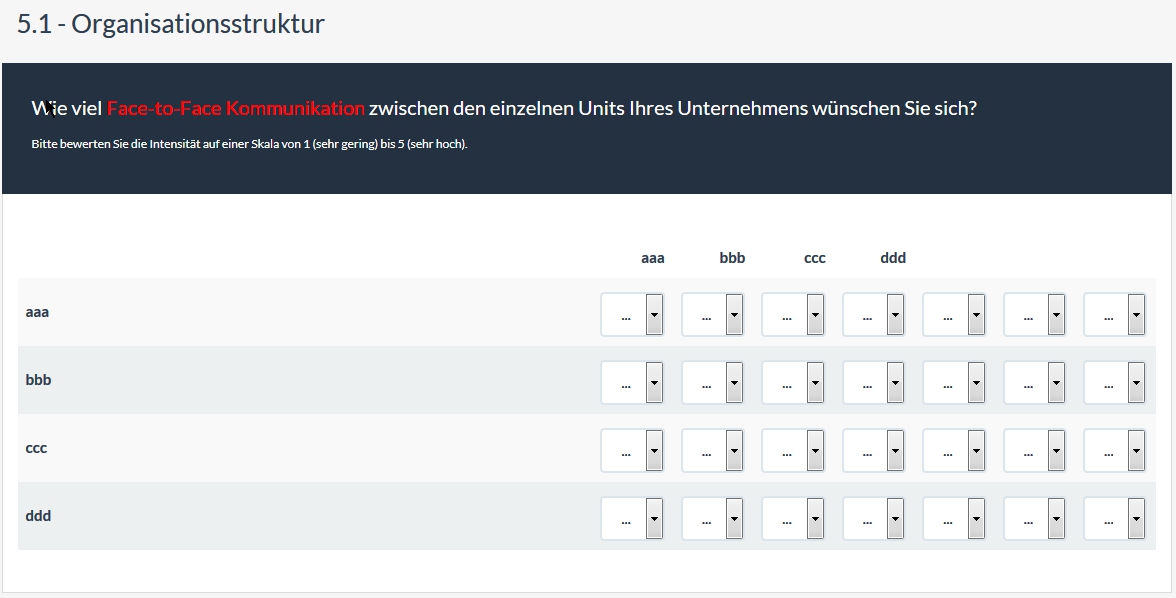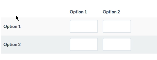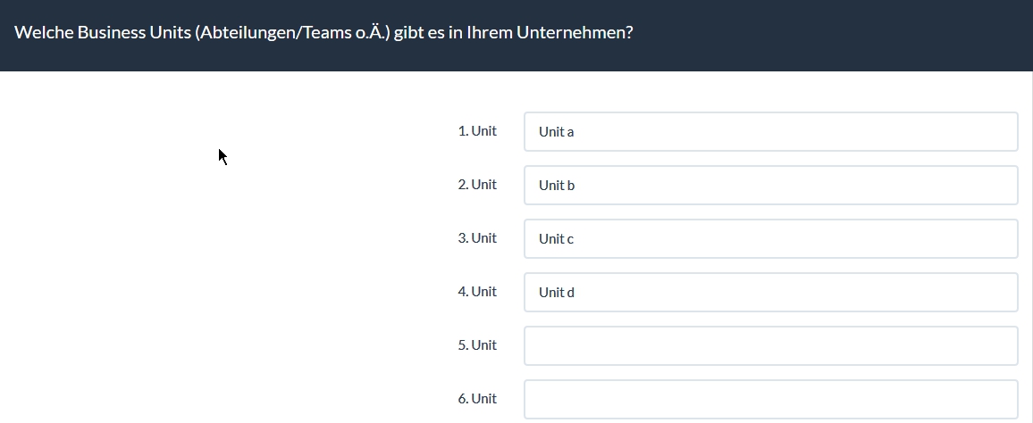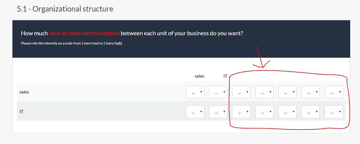okay i dont think language is an issue let me explain ... the image that has 1 is the first and its for writing the departments that the person belongs to and then the second image is for a matrix of helping to map communication among these departments. So what i want to archive is when a client is answering this survey and doesnt put all 7 departments and say has only 4 like above then when they reach that second question i want them to only see four options and not all of them with the blank ones