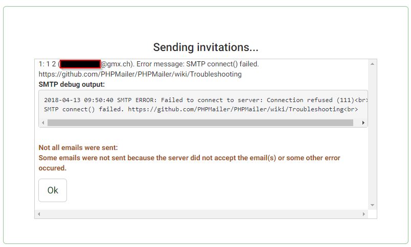 I tried it on my web host as well as XAMPP either way the same error message. Now i changed E-Mail für Rückläufer (bounce mail) and i get a different error message:
