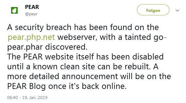 Perhaps related to the news that pear website was hacked. Not sure what is no longer save. The repository seems to be clean, but the website is currently down.DenisChenu wrote: 2 : they forbid the server to read in /usr/local/php56/pear/ (same : server config)