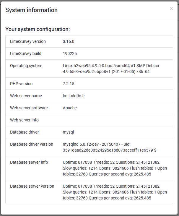 I don't know if it is relevant but when I try to show a "html printable survey" from the survey list, I get something like this :
