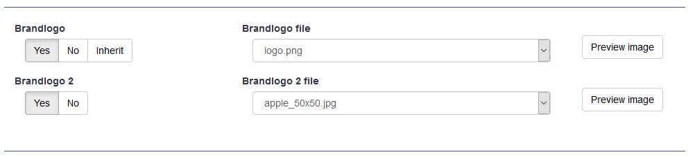 <brandlogo type="buttons" category="Images" width="4" title="Logo" options="on|off" optionlabels="Yes|No">on</brandlogo> <brandlogofile type="dropdown" category="Images" width="6" title="Logo file" parent="brandlogo">themes/survey/vanilla/files/logo.png</brandlogofile> <secondlogo type="buttons" category="Images" width="4" title="SecondLogo" options="on|off" optionlabels="Yes|No">on</secondlogo> <secondlogofile type="dropdown" category="Images" width="6" title="SecondLogo file" parent="secondlogo">themes/survey/vanilla/files/logo.png</secondlogofile>