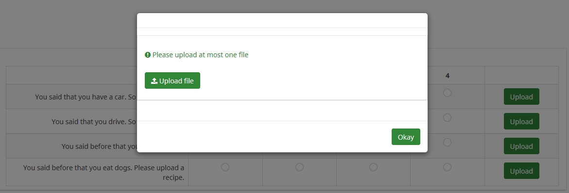 {if(Q1=="Y", "Please upload a photo of your car", "")} {if(Q2=="Y", "Please upload a photo of you driving your car", "")}