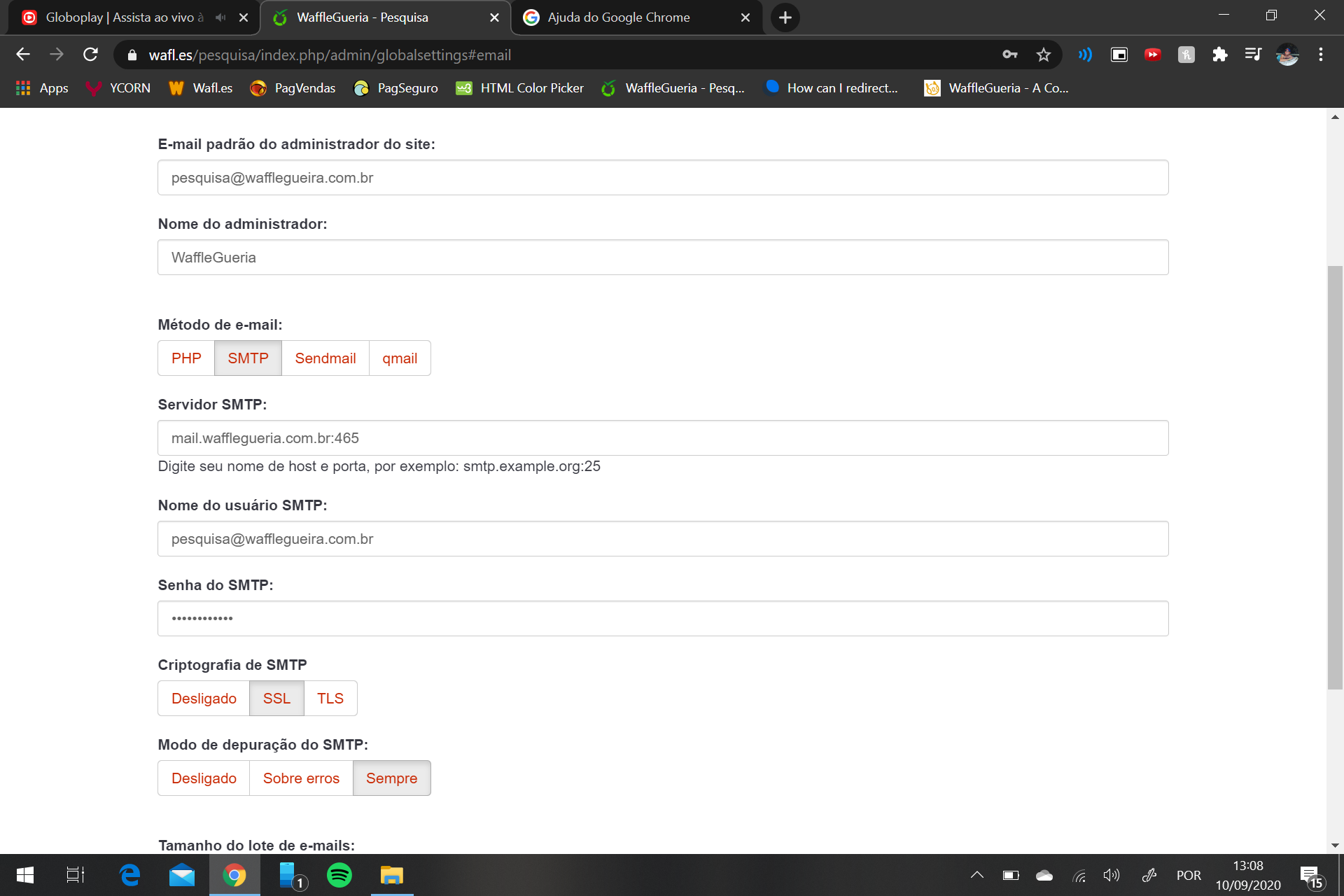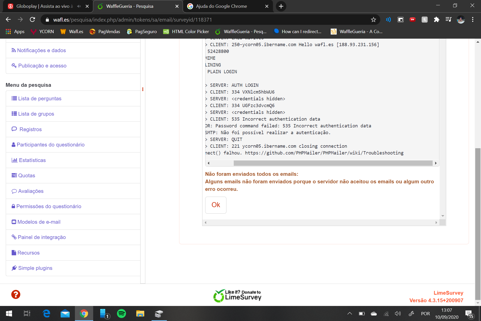Erro do SMTP: Não foi possível realizar a autenticação.