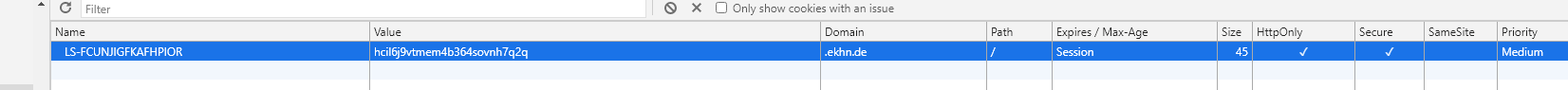 What is you sesssion cookies param (in browser console).