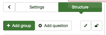 However, from that survey list, if I click on the actual survey and then from within the survey, click on Structure and then on "Add a question" the path is the one mentioned previously with "create" in the path.