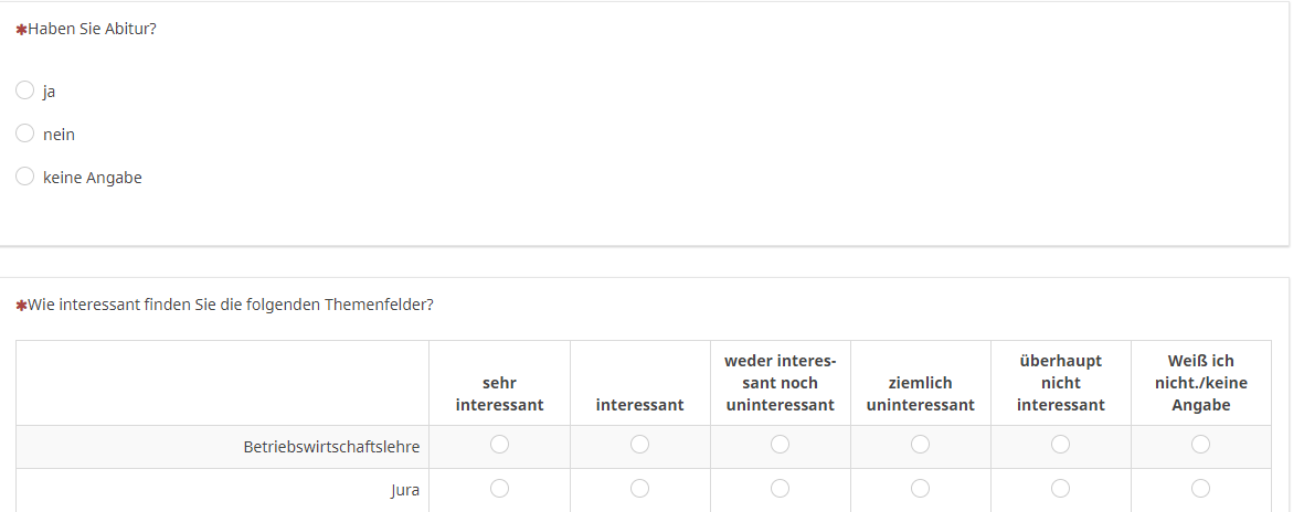 Aktuell läuft die LimeSurvey Umfrage (in der Umfragenvorschau) sehr gut - keine Fehler mehr drin. Nun möchte ich diese Umfrage auch kompatible machen für Handy und Tablet. Insg. soll es möglich gut laufen auf allen 3 Devices (PC, Handy, Tablet).