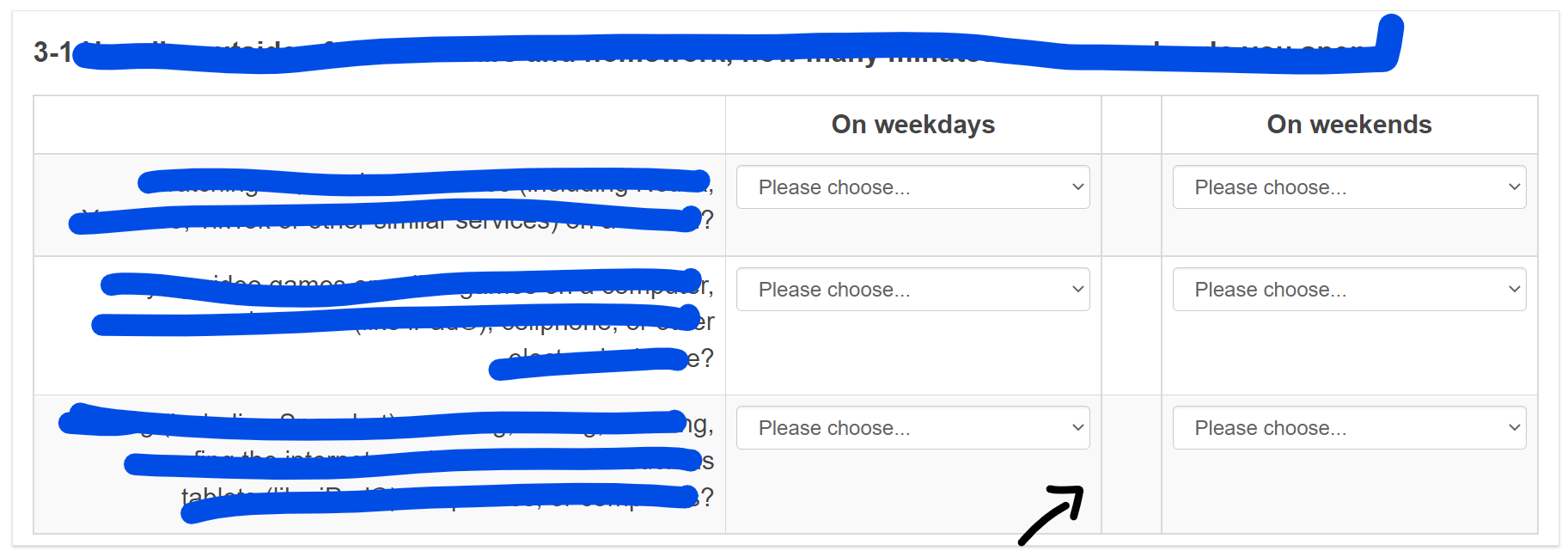Does anyone have an idea on how to delete the dropdown separator for a dual array question? Thank you!