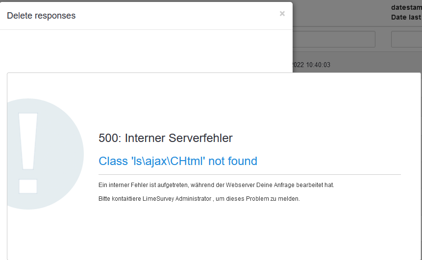 192.168.1.1 - - [24/Nov/2022:10:41:55 +0100] "POST /index.php/admin/responses/sa/actionDelete/surveyid/742337 HTTP/1.1" 500 7981 "https://survey.mydomain.com/index.php/admin/responses/sa/browse/surveyid/742337"