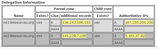 Hello,We've been talking to our domain registrar over and over again, and each time they say it's fixed, wait 24-48 hours, and then it's not fixed. We've decided to move the domain to another domain provider now, that we're also using for limesurvey.net.