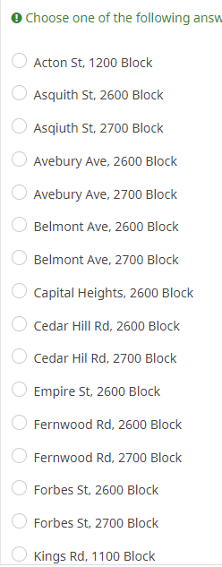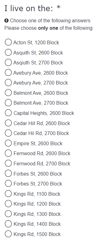 How are they asked? Which question type?respondents are asked to identify the street name and block # they live on