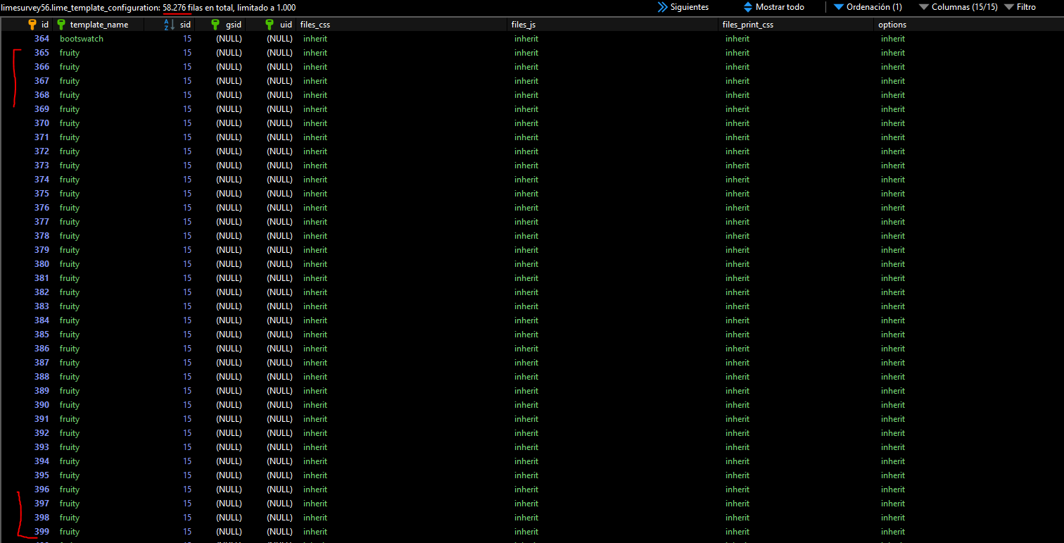 Does anyone know how to debug and reduce the 'lime_template_configuration' table?