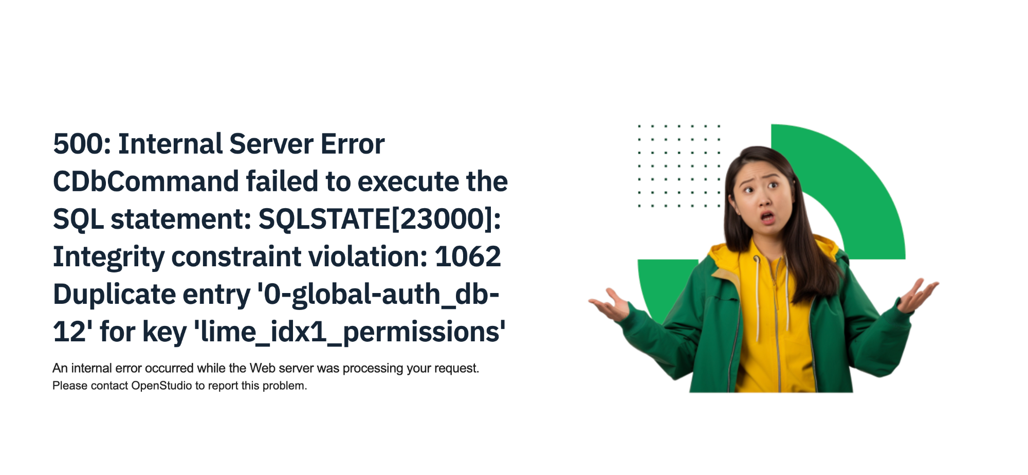 500: Internal Server Error CDbCommand failed to execute the SQL statement: SQLSTATE[23000]: Integrity constraint violation: 1062 Duplicate entry '0-global-auth_db-12' for key 'lime_idx1_permissions'An internal error occurred while the Web server was processing your request.