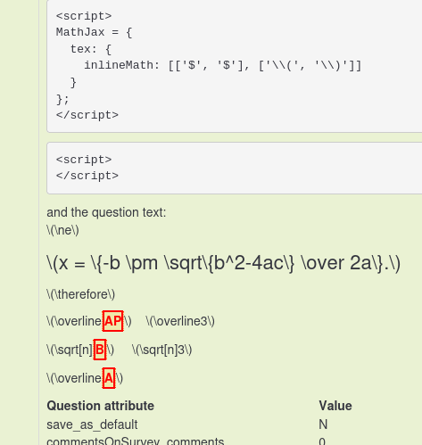 'm encountering an issue while trying to render LaTeX expressions in MathJax, specifically when alphabets are enclosed within braces. For instance, expressions like