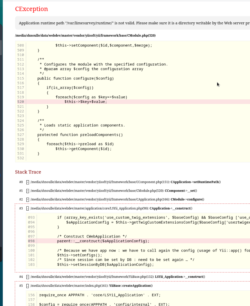 CException Application runtime path "/var/www/html/limesurvey/application/runtime" is not valid. Please make sure it is a directory writable by the Web server process.