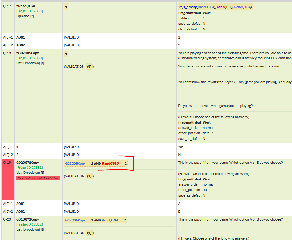 Can you please help me to find the error, I attached the survey, relevant treatment group is Treatmen Group 2