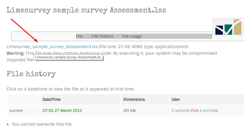 the link to the Assessment example (Limesurvey_sample_survey__Assessment.lss) downloads an empty file. :unsure: