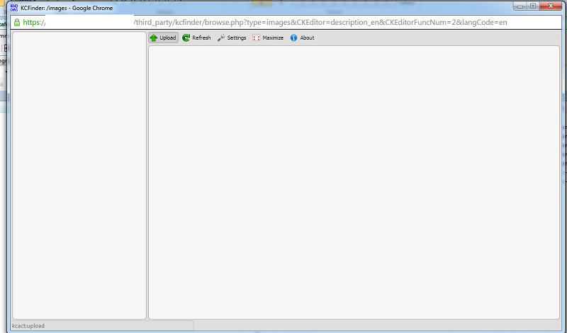 In the Survey editor, after I clicked on the Image > Browse Server, the KCFinder editor pops up but when click on any of the buttons (Upload, Refresh, Settings etc), nothing will happen, as seen in Chrome.