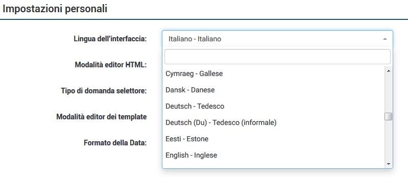 Quindi cambiare la lingua.Anche io lavoro in tedesco (e più con le persone che con i computer)... sarà per questo che limesurvey in italiano mi sembra complicato